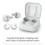 • Hear your world — Echo Buds are a semi-in-ear design that help reduce outside noise and keep you connected to your surroundings while listening to music or taking calls. Light weight and sweat resistant, they ship with pre-installed silicone earbuds covers to optimize your fit.