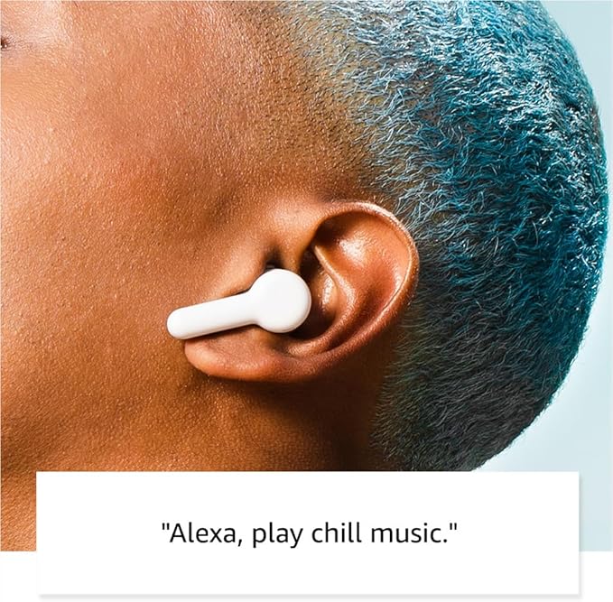 Amazon Echo Buds (newest model), True Wireless Bluetooth 5.2 Earbuds with Alexa, audio personalization, multipoint, 20H battery with charging case, fast charging, sweat resistant, Glacier White